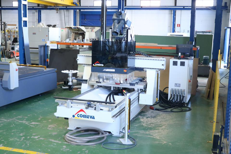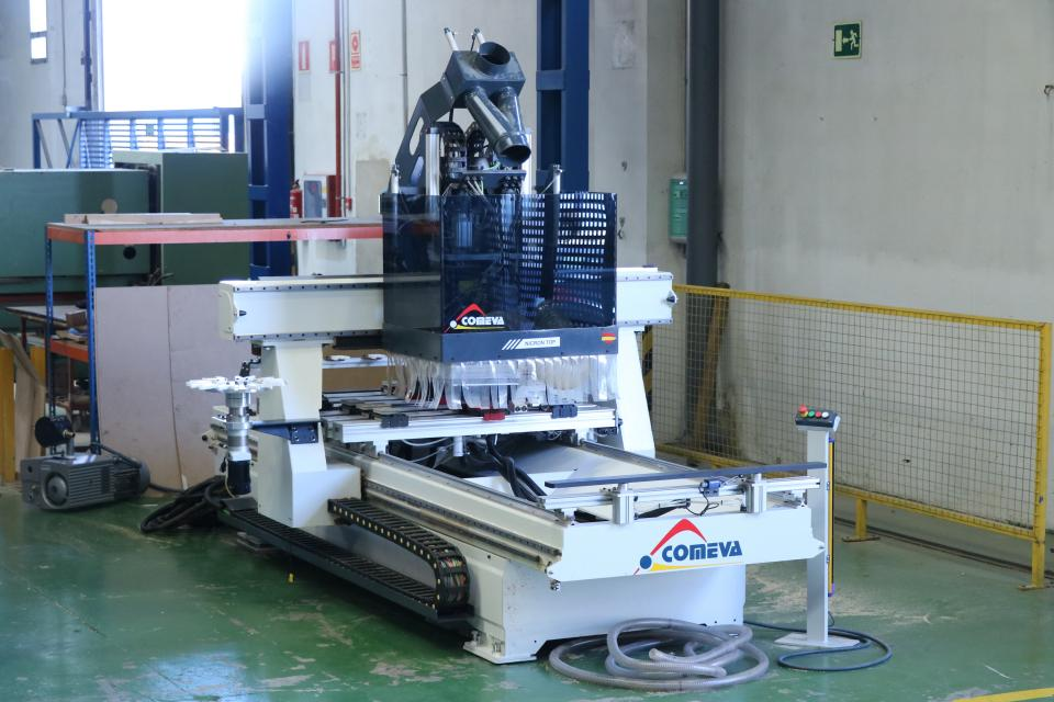 Serial Nº@20118-0003|Year@2020|Motor Power@18 KW|Voltage@400V 50 Hz|C.E.@Si|The table measures@1300 x 3200|Table type@6 barras|Sucker vacuum@50 mm schmalz 8 standard+5 narrow+4 rotating|Rise of panels@4|Field of work@1300 x 3200|The motor of the pantograph br@Hiteco|Type of anchor@HSK F 63|Tool change@1 rotating 8 pos. + lineal 5 pos.|Other engines@ – |Drill group@Yes D type|2º Drill group@ – |Group of saws@Saw integrated|Axe C@Yes without TCP|Agregates@Yes BLUM type|Brand and model of control@Osai|Software@Comeva Profesional|Brand vacuum pump@Becker|Vacuum pump power@100 m3/h 2.2kw|Security sistem@Photocells and fencing|Weight@2500 kgs|Dimension@4500 x 2400 x 2200|Pavilion@ –